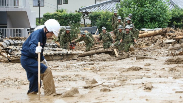 وتعين تعليق عمليات الاغاثة من حين لاخر خوفا من ان تتسبب الامطار المتساقطة باستمرار في انزلاقات تربة جديدة. وتوجه رئيس الوزراء شينزو آبي الاثنين الى مكان الكارثة التي تعتبر من الأسوأ خلال السنوات الاخيرة في الارخبيل واعدا بمساعدة الحكومة على اعادة بناء البنى التحتية المدمرة واعادة اسكان المنكوبين.