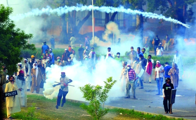 وبدا وسط العاصمة الباكستانية صباح أمس اشبه بساحة حرب تنبعث منها رائحة الغاز المسيل للدموع، حيث أطلقت الشرطة الرصاصات المطاطية والغاز المسيل للدموع على الحشد عندما بدأ إزالة متارس أمنية وضعت على مسافة كيلومتر واحد من مقر اقامة شريف.