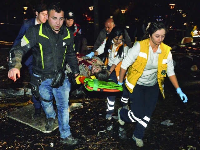 قتل 34 شخصاً على الأقل وأصيب 125 آخرون في اعتداء بسيارة مفخخة في ساحة مزدحمة وسط أنقرة أمس، في هجوم جديد ضمن سلسلة الهجمات التي تهز تركيا، وأشير بأصابع الاتهام إلى حزب العمال الكردستاني.