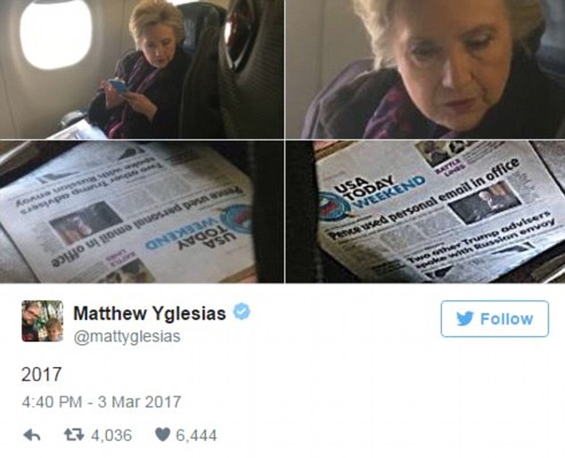 من الواضح أن السخرية لن تنتهي في مواقع التواصل الاجتماعي، خاصة تويتر، بعد أن انتشرت صورة لـهيلاري كلينتون، الجمعة، وهي تقرأ في صحيفة بجوارها على الطائرة عن خبر يتعلق باستخدام نائب الرئيس الأميركي، مايك بنس، لبريده الإلكتروني الخاص في مسائل العمل الحكومي.