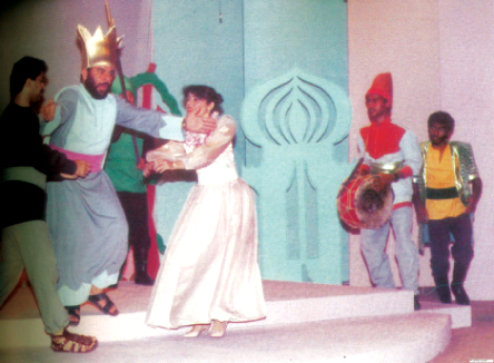 فحاولنا اسعافه من الكواليس.. إلا أنه لم يكن يسمعنا، لأنه كان منفعلاً بشكل غير معقول، ومندمجاً بدوره، حتى شعرنا أنه فعلاً الملك منكتم بن داوود، وظل يصرخ ويلطم وينتف لحيته وشعر رأسه، ثم أخذ يتمتم ببضع كلمات، فهمنا بعضها ولم نفهم ما تبقى، غير أن الجمهور صفق بحرارة لمحمد الحمر، دون أن يدرك أنه نسي دوره، إنما لإبداعه ولوصوله إلى الذروة.