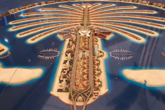 وهذه الخصوصية ظهرت أيضاً في تصميم جزيرة النخلة في دبي، والتي اتخذت شكل النخلة، إذ إن النخلة رمز أساسي ولا يمكن تخيل الإمارات من دون نخيل يعبر عن خصوصيتها، ويقام لأجل هذا، مهرجان سنوي بعنوان «مهرجان ليوا للرطب». وفي شعاره تصميم لسعف النخيل بشكل تجريدي، وفي الوسط دوائر استوحت لونها من لون الرطب قبل النضوج وبعده. وحين البحث عن الرموز المستوحاة من المكان والطبيعة الجغرافية، لتتصدر التصاميم برؤية فنية جديدة، نجد الكثير منها يتجاوز الأماكن الواقعية، ويقبع في تصميم وضعه فنان مبدع. ومن هذه الرموز: الشراع والبحر.