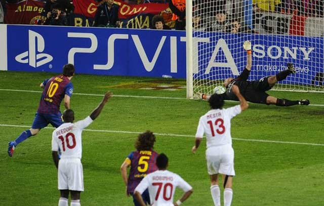 وضغط برشلونة باكرا، وانطلق ميسي من مسافة بعيدة مخترقا منطقة ميلان قبل ان يسدد كرة ارضية التقطها الحارس المخضرم كريستيان ابياتي (5)، ثم اهدر ميسي كرة بالغة الخطورة عندما تلقى تمريرة رائعة من فرانسيسك فابريغاس لكنه سددها من مسافة قريبة بجانب القائم الايمن (7).