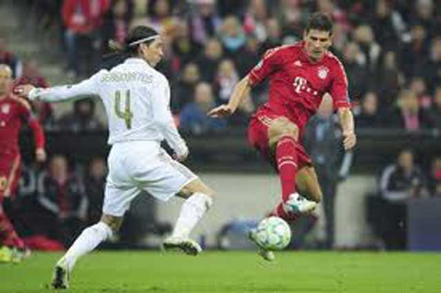 لم تشهد المباراة فرصاً كثيرة بسب الاندفاع البدني الكبير وخاصة من الفريق البافاري الذي لعب أمام 70 ألفاً من أنصاره وعلى معقله الاليانز ارينا، فكانت الأفضلية له معظم أوقات المباراة لكن دون خطورة كبيرة، كان لهذا الحضور اثر كبير في تحفيز لاعبي البايرن فنزلوا الملعب أكثر تصميماً وقتالية بغية انتزاع بطاقة التأهل دون انتظار لقاء العودة الصعب، فدانت لهم السيطرة شيئاً ما خاصة في الخمس دقائق الأولى من اللقاء غير أن الخطورة الحقيقية كانت من نصيب الريال عندما تسلم بنزيمه تمريرة رائعة من اوزيل وانفرد بالمرمى غير أن الحارس العملاق واحد أفضل حراس العالم نوير تصدى لتصويبة كريم وأخرجها ركنية عند الدقيقة السابعة.