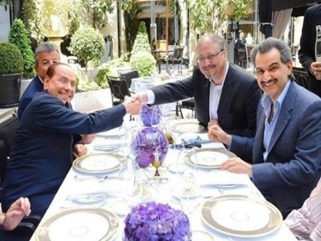 وبحسب الموقع فإن اللقاء الذي جمع بيرلسكوني، بالأمير الوليد بن طلال ومعاونه جمال خاشقجي، تناول أمرين اثنين، أولهما إمكانية استثمار الأمير في الميلان، أما الأمر الثاني فكان بحث التعاون بين الطرفين "إعلامياً" خلال الفترة القادمة التي ستشهد انطلاق قناة "العرب" التي يملكها الأمير السعودي.