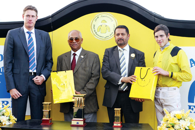 وعقب ختام الشوط قام ميرزا الصايغ ورانيا عبدالله وعلي رائد بتسليم جائزة الفوز إلى فتحي السيد محمد إقزيمة مالك «راشان روك».