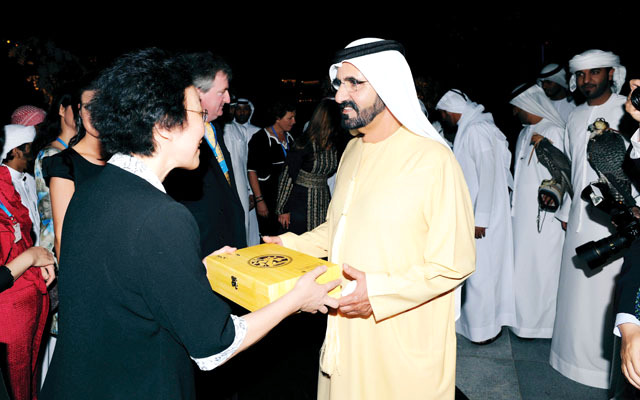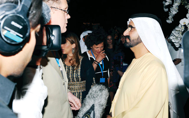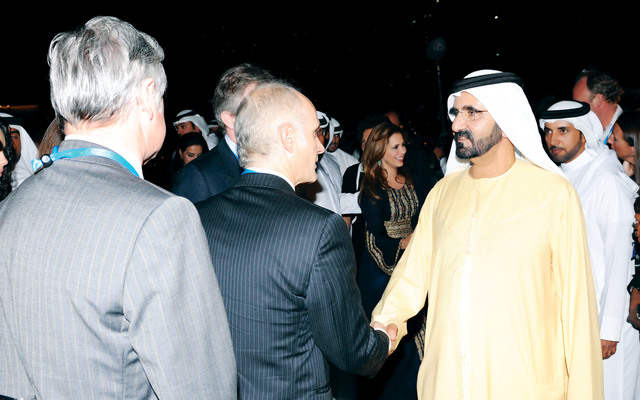شهد صاحب السمو الشيخ محمد بن راشد آل مكتوم، نائب رئيس الدولة رئيس مجلس الوزراء حاكم دبي، رعاه الله، حفل الاستقبال الذي نظمته شركة «فالكون وشركاءها»، أمس، في باحة برج خليفة ــ أطول برج في العالم ــ بمناسبة انطلاق كأس دبي العالمي للخيول 2012 اليوم، وحضره ما يناهز 400 شخصية من كبار رجال الاقتصاد والأعمال والرموز الرياضية والاجتماعية والشخصيات العامة من مختلف أنحاء العالم.