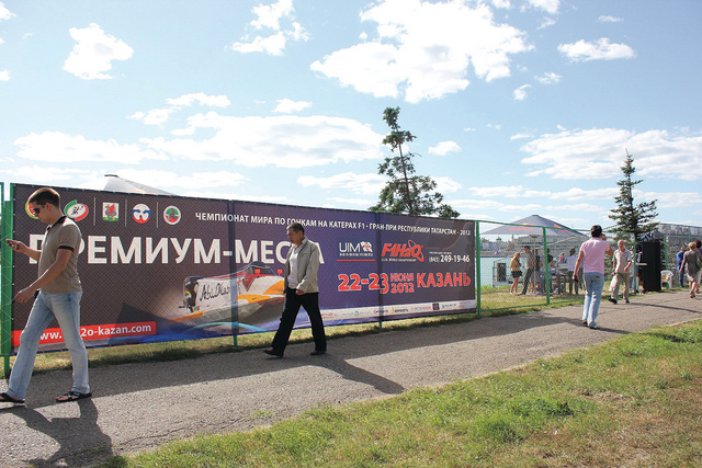 كانت الإعلانات التي تملأ شوارع مدينة كازان عن السباق تحمل صورة رائعة وكبيرة جدا لزورق فريق أبوظبي، والذي وضعته اللجنة المنظمة للسباق في المدينة بحكم أن زورق الهاملي كان الأول في الجولة الماضية، والجميل أن اسم أبوظبي كان بارزا وواضحا على هذه اللوحات في مختلف أنحاء المدينة.