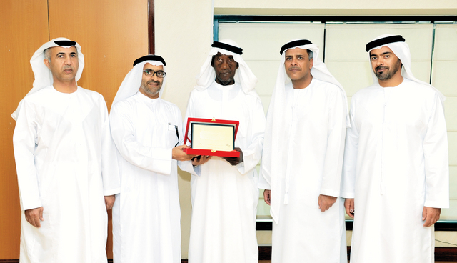 وقدم اللواء احمد محمد بن ثاني رئيس مجلس إدارة نادي دبي الدولي للرياضات البحرية درعا تذكارية إلى المحتفى به خلال الاحتفال المبسط الذي جرى في قاعة الاجتماعات بالنادي بحضور علي ناصر بالحبالة نائب رئيس مجلس الإدارة وعلي جمعة بن غليطة المدير التنفيذي بالوكالة ومحمد سهيل العيالي مشرف عام السباقات التراثية والمحلية بالنادي.