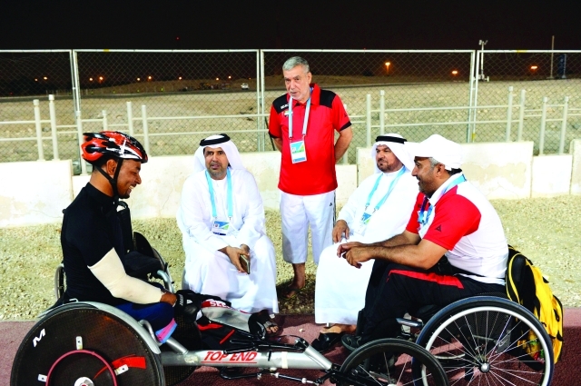وحضر محمد محمد فاضل الهاملي رئيس اتحاد الإمارات لرياضة المعاقين عضو اللجنة البارالمبية الدولية وعبد الرزاق أحمد بني رشيد عضو مجلس إدارة اتحاد الإمارات لرياضة المعاقين رئيس اتحاد غرب آسيا لذوي الإعاقة وذيبان سالم المهيري الأمين العام باتحاد الإمارات لرياضة المعاقين رئيس البعثة منافسات اليوم الأول لتشجيع لاعبينا وبث روح الحماس، كما قاموا بجولة لمناطق تدريب وإحماء اللاعبين ومنطقة العلاج الطبيعي التقوا خلالها العديد من المنتخبات العربية والآسيوية المشاركة في هذا المحفل العالمي.