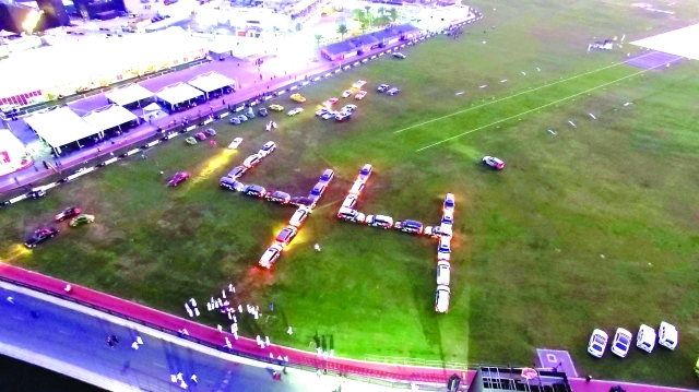 في الوقت الذي تألق الرياضيون من جميع الألعاب بعروضهم في سماء نادي سكاي دايف، تحولت الأرض إلى لوحة جميلة هي الأخرى، حيث اصطفت عشرات سيارات الدفع الرباعي التي تزينت بألوان علم الدولة، في مظاهرة حب لمناسبة اليوم الوطني الـ44، واصطفت إلى جانبها العديد من السيارات الكلاسيكية، ضمت 9 سيارات لفريق «من الإمارات»، فيما جاءت 21 سيارة من الكويت تمثل أعضاء مجموعة «كيو 8»، وهي سيارات تتراوح سنة صنعها من 1950 إلى 1980، من مختلف الأنواع.