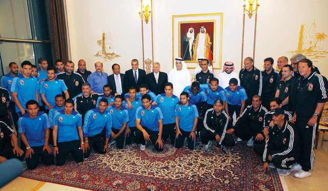 استقبل صاحب السمو الشيخ سعود بن صقر القاسمي عضو المجلس الأعلى حاكم رأس الخيمة، بحضور الشيخ محمد بن صقر القاسمي رئيس الاتحاد الدولي للتاريخ والإحصاء لكرة القدم مساء أمس في قصر الظيت، حسن حمدي رئيس النادي الأهلي المصري وأعضاء الجهازين الفني والإداري، ولاعبي الفريق الأول في النادي الذي يعقد معسكره التدريبي حالياً في الدولة.