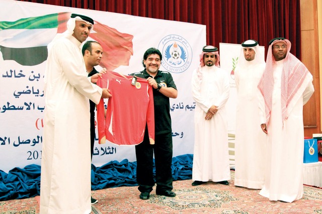 قال الأسطورة الأرجنتيني دييغو أرماندو مارادونا المدير الفني لفريق الوصل، أنه سعد كثيراً بلقاء صاحب السمو الشيخ محمد بن راشد آل مكتوم نائب رئيس الدولة رئيس مجلس الوزراء حاكم دبي، رعاه الله، مضيفاً: حظيت بشرف مقابلة صاحب السمو في بطولة كأس العالم للخيول بدبي، وكانت فرصة مميزة أيضاً أن ألتقي بسمو الشيخ أحمد بن راشد آل مكتوم رئيس نادي الوصل، الذي وعدني بتعزيز صفوف الفريق بلاعبين جُدد في الموسم المقبل، جاء ذلك في المؤتمر الصحافي الذي عُقد عقب لقاء الوصل بنظيره الرفاع البحريني ضمن منافسات دور المجموعات للبطولة الخليجية 27 للأندية، والتي انتهت لمصلحة الفهود بهدفين نظيفين.