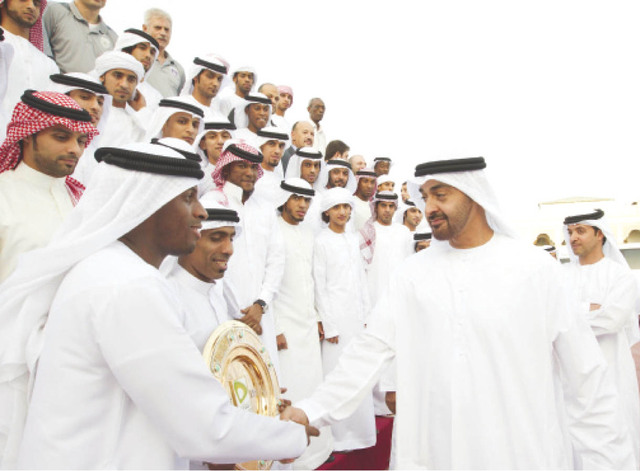 استقبل الفريق أول سمو الشيخ محمد بن زايد آل نهيان، ولي عهد أبوظبي نائب القائد الأعلى للقوات المسلحة، أمس بقصر البحر بحضور سمو الشيخ طحنون بن محمد آل نهيان، ممثل الحاكم في المنطقة الشرقية، فريق نادي العين لكرة القدم، الحائز على درع بطولة دوري المحترفين لكرة القدم للموسم 2011 - 2012، وأعضاء مجلس الشرف وأعضاء مجلس إدارة النادي يرافقهم سمو الشيخ هزاع بن زايد آل نهيان، مستشار الأمن الوطني الرئيس الفخري لاتحاد كرة القدم والنائب الأول لرئيس نادي العين والنائب الأول لرئيس هيئة الشرف العيناوية.