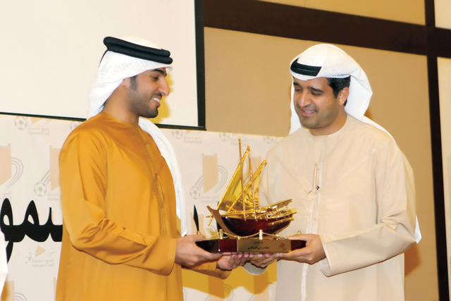 توجه خليفة الجرمن رئيس مجلس ادارة نادي عجمان بأسمى آيات الشكر والتقدير الى صاحب السمو الشيخ حميد بن راشد النعيمي عضو المجلس الأعلى حاكم عجمان والى سمو الشيخ عمار بن حميد النعيمي ولي عهد عجمان رئيس المجلس التنفيذي لدعم سموهما الكريم للنادي والى سمو الشيخ راشد بن حميد النعيمي رئيس دائرة البلدية والتخطيط رئيس النادي لاهتمامه ودعمه المستمر الذي كان له أبلغ الأثر في استقرار النادي وتحقيق فريق كرة القدم طموحات أبناء عجمان، جاء ذلك في بداية كلمته خلال حفل التكريم الذي اقامه النادي للشركات الراعية بمناسبة ختام الموسم الكروي وقال الجرمن ان نجاحات النادي تحققت بفضل الدعم والاهتمام الذي وجدوه مشيدا في ذلك بدور الشركات والرعاة وكل الذين تعاونوا مع النادي.