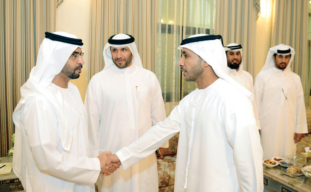 استقبل سمو الشيخ حمدان بن زايد آل نهيان، ممثل حاكم أبوظبي في المنطقة الغربية، في ليوا أمس، فريق مجلس تنمية المنطقة الغربية للرماية الحائز المركز الأول عن فئة فرق الرجال في بطولة أبوظبي للرماية 2012، التي أقيمت تحت رعاية سمو الشيخ هزاع بن زايد آل نهيان، مستشار الأمن الوطني نائب رئيس المجلس التنفيذي رئيس مجلس أبوظبي الرياضي.