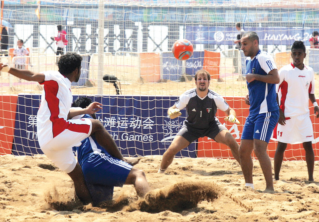 بدأ منتخبنا الوطني لكرة القدم الشاطئية مشوار الدفاع عن لقبه بنجاح في مباراته الأولى، التي أقيمت صباح أمس على شاطئ مدينة هيانغ الصينية، التي تحتضن فعاليات بطولة آسيا للألعاب الشاطئية في نسختها الثالثة.