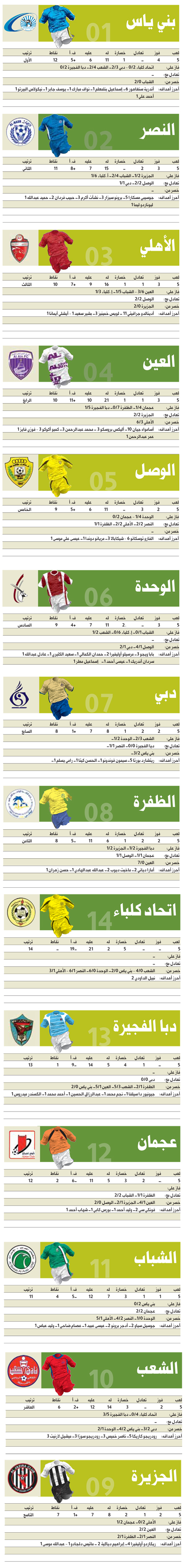 جاءت الجولة الخامسة لدوري المحترفين حافلة بالأحداث، حملت معها ثورة في القمة خلّفت هدوءاً واستقراراً في القاع، حيث أعاق دبي تقدّم النصر وتسبب في إزاحته عن الصدارة، بعد أن أجبره على التعادل في المباراة التي جمعتهما الأحد الماضي، وبهذه النتيجة أعاد «أسود العوير» ترتيب الأوراق في القمّة وأهدوا الصدارة لبني ياس لأول مرّة منذ بداية الدوري، متقدماً بنقطة على النصر الذي جاء في المركز الثاني بـ11 نقطة.