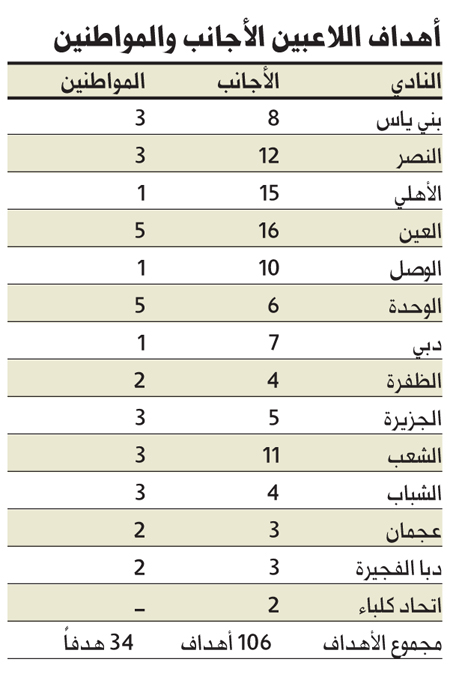 أهداف اللاعبين الأجانب والمواطنين وعدد مرات التعادل وضربات الجزاء (احصائية)