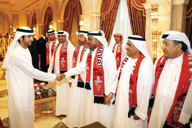 وسمو الشيخ مكتوم بن محمد بن راشد آل مكتوم نائب حاكم دبي نائب رئيس النادي الأهلي، بمناسبة فوز الفريق الأول لكرة القدم بالنادي بكأس صاحب السمو رئيس الدولة لكرة القدم، إلى جانب حصد الأهلي للعديد من الألقاب في كرة اليد والسلة والكاراتيه وألعاب القوى وكرة القدم الشاطئية والدراجات.