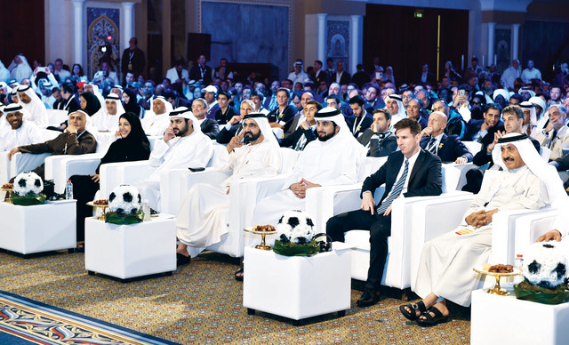 وقال: نفخر بحضور صاحب السمو الشيخ محمد بن راشد آل مكتوم نائب رئيس الدولة رئيس مجلس الوزراء حاكم دبي، رعـاه الله، فعاليات الجلسة الافتتاحية، ونشكر سموه على دعمه اللامحدود للقطاع الرياضي.