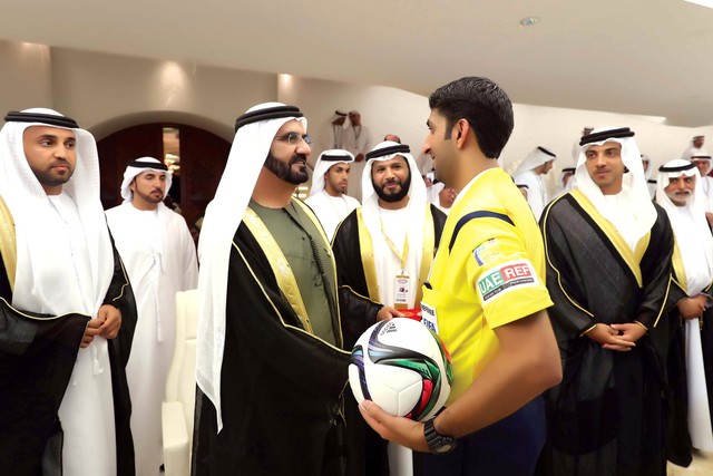 عبر خالد الدوخي، مدير إدارة الحكام، عن سعادته بنيل توقيع صاحب السمو الشيخ محمد بن راشد آل مكتوم نائب رئيس الدولة رئيس مجلس الوزراء حاكم دبي، على كرة مباراة نهائي كأس رئيس الدولة للمرة الثانية خلال مسيرته التحكمية.