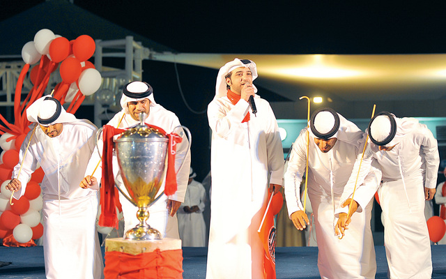 احتفل الفنان الإماراتي عيضة المنهالي مع جمهور نادي الجزيرة أول من أمس بطريقتهم على كورنيش أبوظبي، مع احتفاظ فريقهم بلقب كأس رئيس الدولة لكرة القدم للعام الثاني على التوالي، وصدح عيضة بأغنياته تشجيعاً ودعماً للفريق الفائز ورافقته فرق حربية الشعبية.