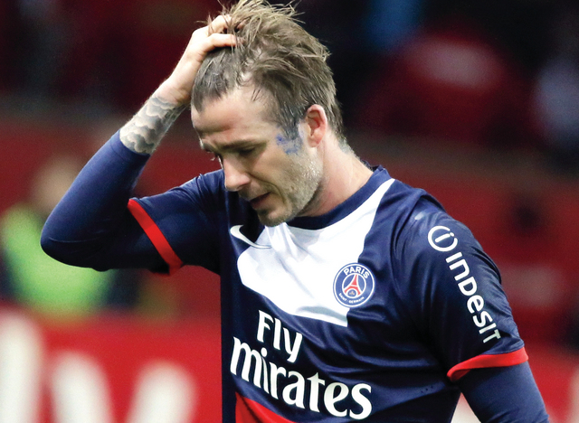 ودع ديفيد بيكهام ملاعب كرة القدم بالدموع، إذ انخرط في البكاء عقب مباراة باريس سان جيرمان بطل دوري الدرجة الاولى الفرنسي لكرة القدم وبريست متذيل الترتيب في ليلة لا تنسى على استاد بارك دي برينس.