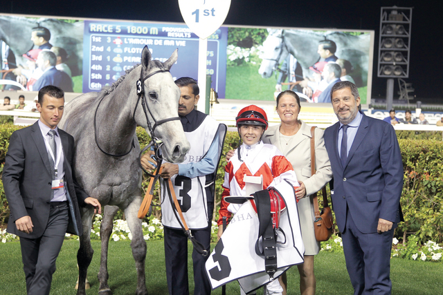 توجت الفرس الفرنسية «لامور دو مافي» لمزرعة إم. دي بطلة للشوط الخامس الرئيس «بلانشين» لمسافة 1800 متر جروب «2» على المضمار العشبي، وبلغت قيمة الجائزة 200 ألف دولار.