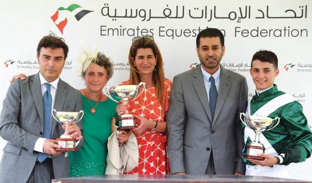 وذهب لقب الشوط الثالث الى إيطاليا حيث تمكن الجواد الناشئ «أورجي دي جالورا» لـرازا لاتينا من الفوز بالشوط الثالث المخصص للخيول العربية الأصيلة في سن ثلاث سنوات فقط لمسافة 1400ص متر على لقب سباق اتحاد الإمارات للفروسية البالغ إجمالي جوائزه المالية 20 ألف جنيه إسترليني.