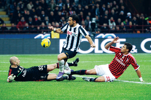 أهدر ميلان «الروسينيري» حامل اللقب فرصة الحاق الخسارة الاولى بضيفه يوفنتوس هذا الموسم عندما تعادل معه 1-1 في قمة المرحلة الخامسة والعشرين من الدوري الايطالي لكرة القدم اول من أمس على ملعب "سان سيرو" امام نحو 80 الف متفرج.