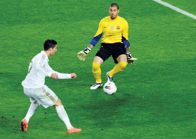 في المقابل، تفوق النجم البرتغالي رونالدو على نجم برشلونة الارجنتيني ليونيل ميسي ونجح في هز الشباك بطريقة رائعة رافعا رصيده الى 42 هدفا في صدارة لائحة الهدافين بفارق هدف واحد امام ليو الذي كان بعيدا عن مستواه الا فيما ندر من الفرص وبعض التمريرات الحاسمة على غرار اندريس انييستا.