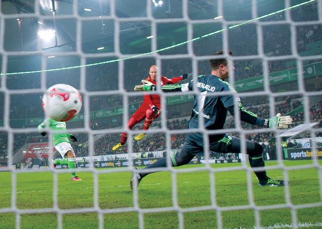 واصل بايرن ميونيخ المتصدر التغريد خارج السرب بتغلبه على ضيفه فولفسبورغ 2 - صفر اول من امس الجمعة في افتتاح المرحلة الثانة والعشرين من الدوري الالماني لكرة القدم. وهو الفوز الخامس على التوالي لبايرن ميونيخ والثامن عشر هذا الموسم، ويدين به الى مهاجم فولفسبورغ السابق الدولي الكرواتي ماريو ماندزوكيتش الذي افتتح التسجيل في الدقيقة 36 رافعا رصيده الى 15 هدفا منفردا بصدارة لائحة الهدافين والى 6 اهداف في المباريات الاربع التي خاضها فريقه حتى الان في 2013 و15 في 19 مباراة حتى الان، والدولي الهولندي اريين روبن صاحب الهدف الثاني في الدقيقة الثانية من الوقت بدل الضائع.