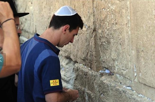 وتواجد نجوم البارسا وعلى رأسهم ليونيل ميسي أمام حائط المبكى الشهير في القدس الغربية.