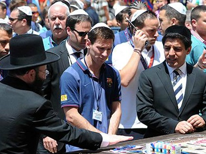 سادت حالة من الغضب والاستياء بين زوار مواقع التواصل الاجتماعي من العرب والمسلمين، بعد تداول صور يظهر فيها لاعبو فريق برشلونة الإسباني وفي مقدمتهم ميسي ونيمار وهم يضعون على رؤوسهم "القلنسوة" الخاصة باليهود، خلال زيارتهم لحائط "البراق" في القدس المحتلة، الذي سطت عليه "إسرائيل" مدّعية أنه جزء من الهيكل المزعوم وغيرت اسمه إلى حائط "المبكى".
