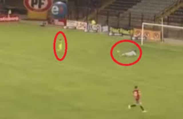 وهيأ الحارس الكرة بغرابة شديدة أثناء محاولة تمريرها لزميله ليستغل مهاجم الفريق المنافس أليخاندرو فارغاس الوضع، ويسدد في الشباك الخالية.