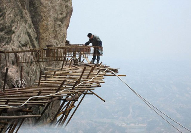 في نفس المحافظة وعلى موقع ليس ببعيد من الجسر الزجاجي يوجد جسر آخر يرتفع آلاف الأمتار عن سطح الأرض مصنوع من ألواح خشبية وعرضه لا يتجاوز عرض طاولة طعام وفي نهاية الجسر يضيق عرضه ليصبح نصف متر وهو أطول جسر مطل في الصين.
