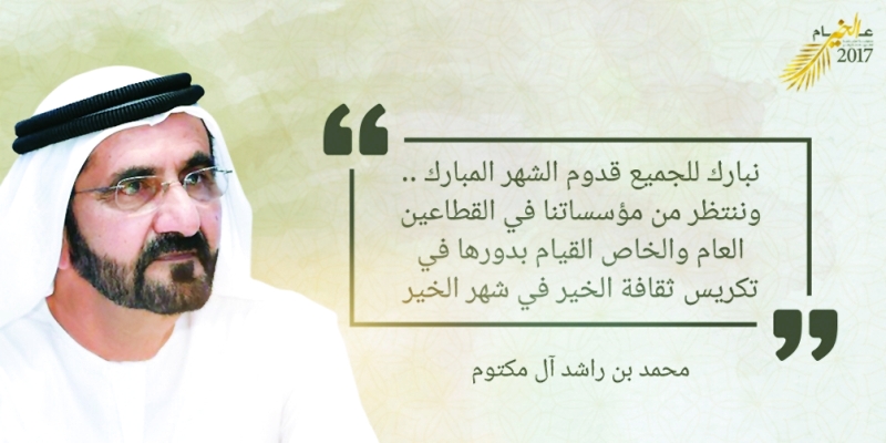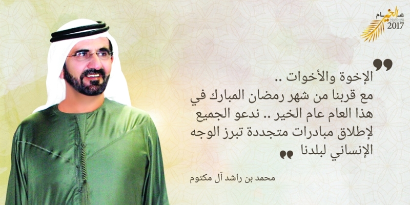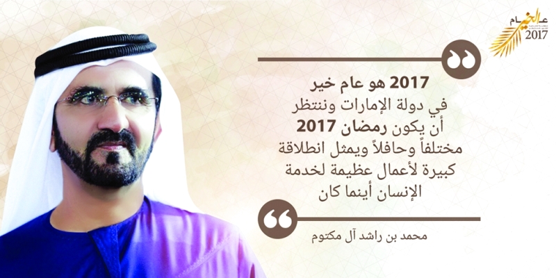 وتابع سموه: 2017 هو عام خير في دولة الإمارات وننتظر أن يكون رمضان 2017 مختلفاً وحافلاً ويمثل انطلاقة كبيرة لأعمال عظيمة لخدمة الإنسان أينما كان.