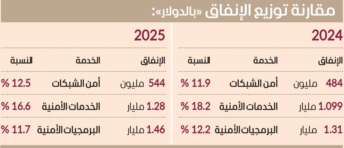 كشفت شركة «جارتنر» للأبحاث عن أحدث توقعاتها حول إنفاق المؤسسات في منطقة الشرق الأوسط وشمال أفريقيا على أمن المعلومات، والذي سيصل إلى 3.3 مليارات دولار في العام الجاري، بزيادة قدرها 14 % عن عام 2024، وأن البرمجيات الأمنية سوف تستحوذ على الحصة الكبرى من الإنفاق على أمن المعلومات في المنطقة، وتوقعت أن يبلغ الإنفاق في هذا المجال نحو 1.5 مليار دولار خلال العام الجاري.