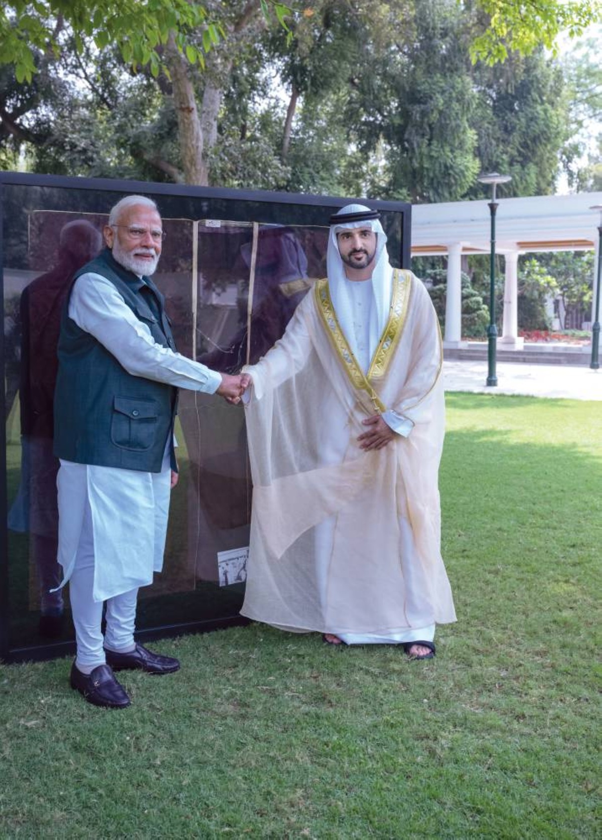 حمدان بن محمد مصافحاً ناريندرا مودي