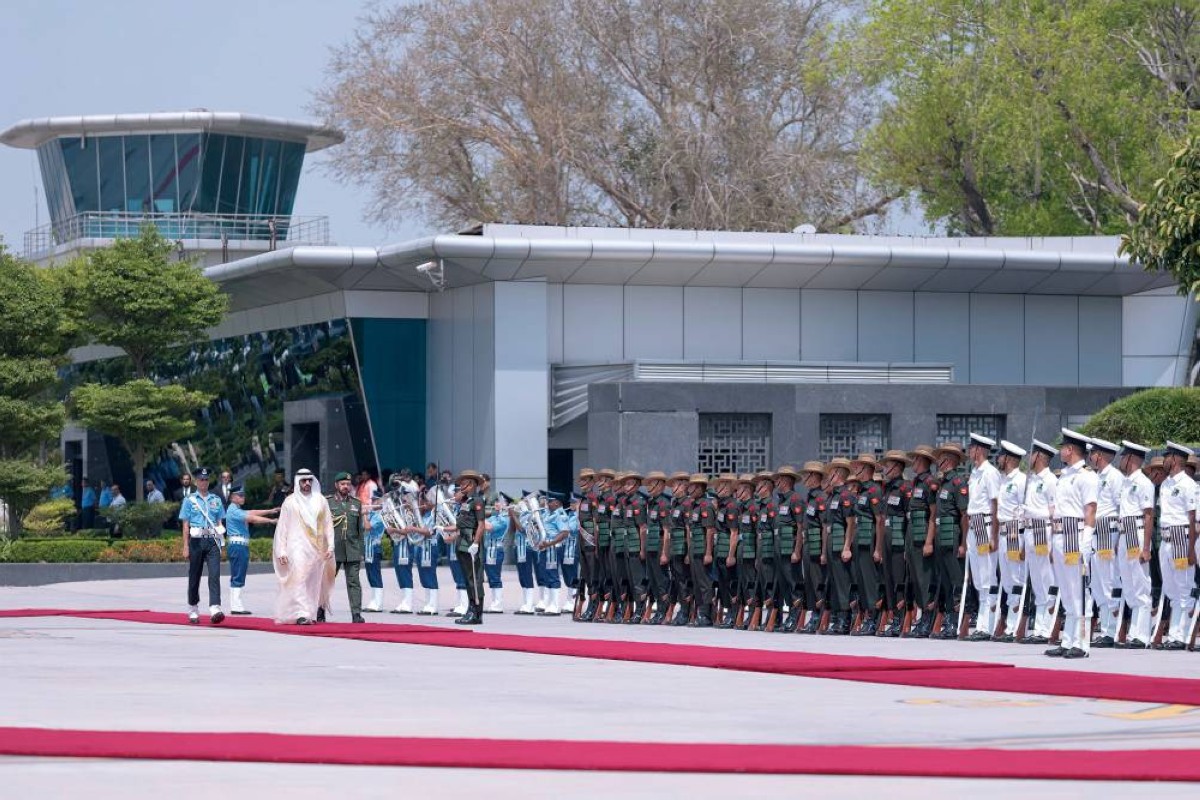 حمدان بن محمد مستعرضاً حرس الشرف