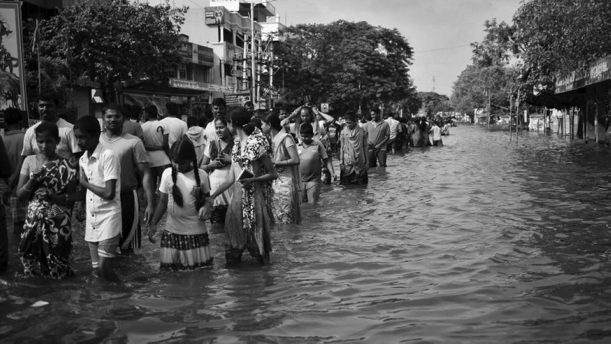2015 - فيضانات جنوب الهند تتسبب في مقتل 300 شخص وتشريد 1.8 مليون.