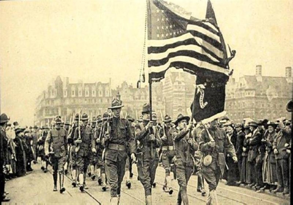 1917 الكونغرس الأمريكي يوافق على خوض الحرب العالمية الأولى ضـد ألمانيا.