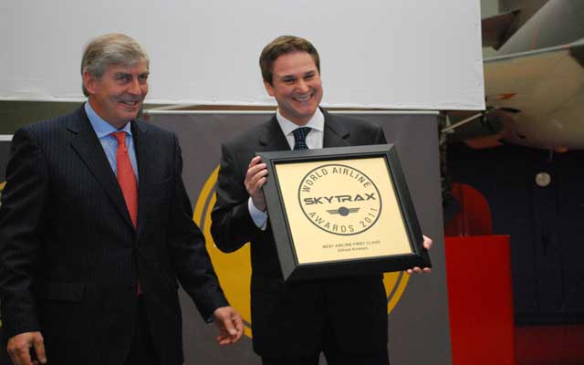 تم اختيار شركة الاتحاد للطيران، الناقل الوطني لدولة الإمارات العربية المتحدة، كأفضل شركة طيران في العالم عن فئة الدرجة الأولى، وذلك في جوائز شركات الطيران العالمية التي تقدمها مؤسسة "سكاي تراكس" سنوياً، فضلاً عن استحواذها على المرتبة السادسة عن فئة "أفضل شركة للعام" في الترتيب العام لشركات الطيران. وهذا هو العام الثاني على التوالي الذي تحصل فيه الاتحاد للطيران والتي تتخذ من أبوظبي مقراً لها على هاتين الجائزتين. كما تم تكريم الاتحاد للطيران أيضاً بحصولها على جائزة "أفضل خدمات للطعام على متن الدرجة الأولى"، تقديراً لبرنامج الطهي الخاص بها الذي يحمل اسم "الخدمة المتميّرة".