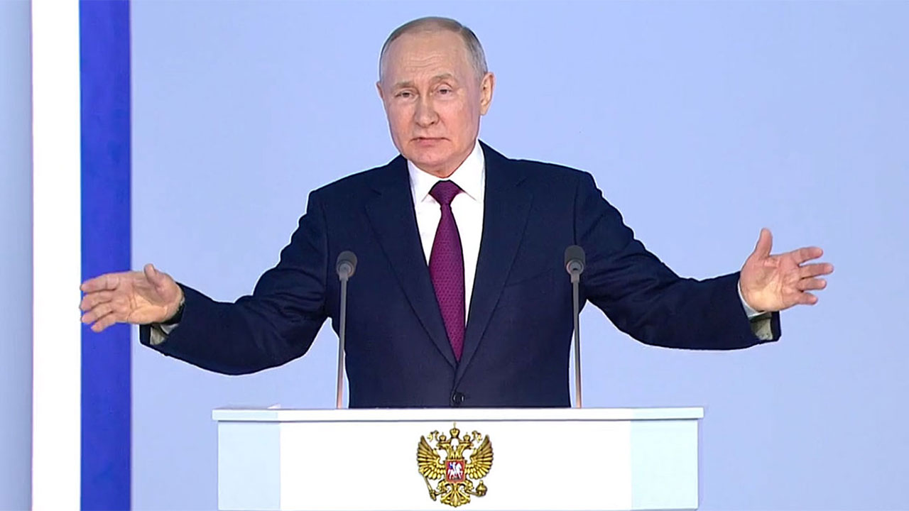 هاجم الرئيس الروسي فلاديمير بوتين في خطابه السنوي للأمة الولايات المتحدة والغرب، معتبراً أنهم هم من ابتدأ الحرب وأن روسيا فعلت ما بوسعها لمنعها، لكنهم أصروا على تحويل الصراع من صراع محلي إلى صراع عالمي.