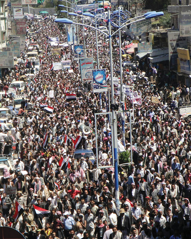 في هذه الأجواء، تظاهر مئات آلاف اليمنيين في إب رفضاً لمبادرة مجلس التعاون الخليجي.. وتظاهر الآلاف في عدن تنديداً بما أسموها مراوغات النظام. وكشف حزب يمني معارض عن اعتقال الحرس الجمهوري اليمني 16 جندياً بتهمة فرارهم من مواجهة محتجين يطالبون بإسقاط النظام.