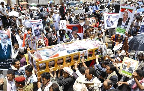 غصّت العاصمة اليمنية صنعاء أمس بالمتظاهرين المطالبين بإسقاط نظام الرئيس علي عبد الله صالح، مرددين هتافات رافضة لأي حوار أو مبادرات، فيما تلقت الأوساط السياسية المعارضة موقف مجلس التعاون الخليجي الصادر ليل الثلاثاء بشأن جهود حل الأزمة بسلبية واعتبروه «تخلياً» عن اليمن.. بالتزامن مع عودة الملف الأمني إلى الواجهة إثر هجوم مسلحي «القاعدة» على مبان حكومية في مدينة الحوطة (محافظة لحج) في محاولة للسيطرة عليها. ودعا المتظاهرون في صنعاء أمس، والذين خرجوا تلبية لدعوة المنسقية العليا للثورة، إلى وقف ما وصفوه بــ«التدخلات الخارجية الإقليمية والدولية في الشأن اليمني».