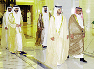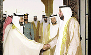اجتمع الشيخ حمد بن خليفة آل ثاني امير دولة قطر الشقيقة بصاحب السمو الشيخ خليفة بن زايد آل نهيان ولي عهد أبوظبي نائب القائد الأعلى للقوات المسلحة بالديوان الاميرى بعد ظهر أمس. حضر الاجتماع من جانب دولة الامارات سمو الشيخ حمدان بن زايد آل نهيان وزير الدولة للشئون الخارجية وسمو الشيخ حامد بن زايد آل نهيان عضو المجلس التنفيذى رئيس الدائرة الاقتصادية وسمو الشيخ ذياب بن زايد آل نهيان مدير ديوان الرئاسة ومعالي الشيخ سلطان بن حمدان آل نهيان رئيس دائرة التشريفات والضيافة وأحمد بن جمعة الزعابي مدير مكتب صاحب السمو ولي عهد أبوظبي وعبد الرضا عبدالله خورى سفير الدولة لدى قطر. كما حضره من الجانب القطرى الشيخ جاسم بن حمد آل ثاني ولي عهد قطر والشيخ عبد الله بن خليفة آل ثاني رئيس مجلس الوزراء والشيخ محمد بن خليفة آل ثاني نائب رئيس مجلس الوزراء والشيخ حمد بن جاسم بن جبر آل ثاني وزير الخارجية والشيخ عبد الرحمن بن سعود آل ثاني وكيل التشريفات الأميرية وعبد الله محمد العثمان السفير القطرى لدى الدولة. وقد رحب الشيخ حمد بن خليفة آل ثاني امير دولة قطر بصاحب السمو الشيخ خليفة بن زايد آل نهيان والوفد المرافق لسموه مشيدا سموه بعمق العلاقات الاخوية التى تربط بين البلدين والشعبين الشقيقين والتى تستهدف تحقيق التكامل بين البلدين في مختلف المجالات والمزيد من التعاون الاخوى المشترك. وقد نقل خلال الاجتماع صاحب السمو الشيخ خليفة بن زايد آل نهيان تحيات صاحب السمو الشيخ زايد بن سلطان آل نهيان رئيس الدولة حفظه الله الى اخيه امير دولة قطر متمينا سموه له موفور الصحة والسعادة ولحكومة وشعب دولة قطر المزيد من التقدم والرقي. كما جرى خلال الاجتماع تبادل الراى حول قضايا التعاون بين البلدين الشقيقين والدخول بها في مجالات اوسع في المرحلة المقبلة في ضوء ما انجزته اللجنة العليا المشتركة بين البلدين. وقد اعرب الجانبان عن رغبتهما في توثيق عرى التعاون الاخوى بما يحقق المصلحة المشتركة والمتبادلة بصفة خاصة ومجلس التعاون لدول الخليج العربية بصفة عامة. واكدا سموهما حرصهما على تعزيز مسيرة العمل الخليجى المشترك بما يحقق المزيد من التكامل والوحدة بين دول المجلس وتحقيق تطلعات وامال شعوبها. كما جرى تبادل وجهات النظر حول التطورات والمستجدات الراهنة على الساحتين العربية والدولية اضافة الى عدد من القضايا ذات الاهتمام المشترك. عقب الاجتماع حضر صاحب السمو الشيخ خليفة بن زايد آل نهيان ولي عهد أبوظبي نائب القائد الأعلى للقوات مأدبة الغداء التى اقامها أمير دولة قطر تكريما لسموه والوفد المرافق. حضر المأدبة اصحاب السمو الشيوخ والمعالي الوزراء ورئيس واعضاء مجلس الشورى القطرى وكبار المسئولين من مدنيين وعسكريين واعيان دولة قطر ورؤساء البعثات الدبلوماسية المعتمدين لدى دولة قطر. وكان صاحب السمو الشيخ خليفة بن زايد آل نهيان ولى عهد ابوظبى نائب القائد الاعلى للقوات المسلحة قد وصل الى الدوحة بعد ظهر امس بسلامة الله وحفظه فى زيارة اخوية لدولة قطر الشقيقة تستمر يومين. وكان فى استقبال سموه بمطار الدوحة الدولى الشيخ حمد بن خليفة آل ثانى امير دولة قطر الشقيقة. كما كان فى استقبال صاحب السمو الشيخ خليفة بن زايد سمو الشيخ جاسم بن حمد آل ثانى ولى عهد قطر وسموالشيخ عبدالله بن خليفة آل ثانى رئيس مجلس الوزراء وسمو الشيخ محمد بن خليفة آل ثانى نائب رئيس مجلس الوزراء. كما كان فى استقبال سموه عدد من الشيوخ واصحاب المعالى الوزراء وكبار المسئولين من مدنيين وعسكريين بدولة قطر وعبدالرضا عبدالله خورى سفير الامارات لدى دولة قطر وعبدالله محمد العثمان السفير القطرى لدى الدولة واعضاء سفارة الامارات لدى دولة قطر. وكان صاحب السمو الشيخ خليفة بن زايد آل نهيان ولى عهد ابوظبى نائب القائد الاعلى للقوات المسلحة قد غادر برعاية الله وحفظه البلاد ظهر امس الى الدوحة فى زيارة اخوية لدولة قطر الشقيقة تلبية لدعوة من اخيه صاحب السمو الشيخ حمد بن خليفة آل ثا
