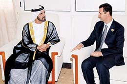 اجرى صاحب السمو الشيخ محمد بن راشد آل مكتوم نائب رئيس الدولة رئيس مجلس الوزراء حاكم دبي رئيس وفد دولة الإمارات إلى مؤتمر القمة العربي الثامن عشر سلسلة من اللقاءات مع عدد من القادة العرب في إطار التشاور حول القضايا المطروحة على القمة العربية. فقد التقى صاحب السمو الشيخ محمد بن راشد آل مكتوم بقاعة الصداقة ظهر أمس مع الرئيس الدكتور بشار الأسد رئيس الجمهورية العربية السورية الشقيقة حيث تبادلا الأحاديث حول العلاقات الأخوية الثنائية بين البلدين والقضايا الراهنة على الساحة العربية وسبل تدعيم التضامن العربي بما يخدم المصالح العربية المشتركة.
