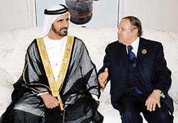 ثم التقى صاحب السمو الشيخ محمد بن راشد آل مكتوم أخاه الشيخ حمد بن خليفة آل ثاني أمير دولة قطر الشقيقة. وتم خلال اللقاء تبادل الأحاديث الأخوية ومسار أعمال القمة العربية ومستقبل العلاقات العربية العربية وسبل تعزيز العمل العربي المشترك. والتقى صاحب السمو الشيخ محمد بن راشد آل مكتوم بعد ذلك الرئيس عبدالعزيز بوتفليقة رئيس جمهورية الجزائر الديمقراطية الشقيقة الذي تبادل مع سموه مسار أعمال مؤتمر القمة العربية والنتائج المرجوة منه حيث أعرب سموه والرئيس الجزائري عن أملهما بأن تكون قمة خير على العرب جميعا وذلك بهمة قادتها وصولا إلى تحقيق التضامن العربي المنشود.